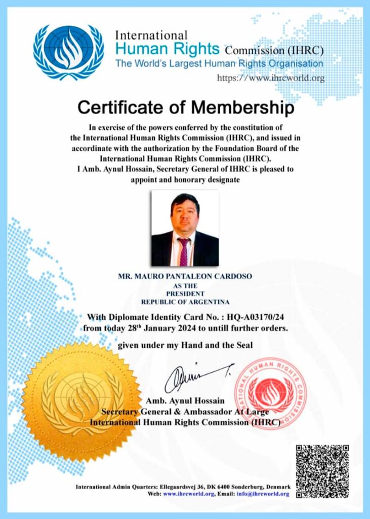 El Mr. Mauro Pantaleón Cardoso como delegado en Argentina, ante el requerimiento del Dr. H. C. José Ángel Ramírez por medio del equipo de abogados con que cuenta, dio las directivas al abogado del equipo que maneja el Área de presentaciones ante los Organismos Internacionales de Derechos Humanos, el Dr. Gustavo Daniel Prellezo, para tomar las acciones preventivas para poner a salvo la vida y la salud, y en defensa de los Derechos Humanos priorizando la protección de lo inherentes a la persona humana, gestión que fue realizada con éxito, porque se logró una medida inédita dentro del derecho interno del país (Argentina) en donde la CIDH dictó una Medida Cautelar (MC-999-23) que con medidas efectivas que impuso al Estado Argentino la obligación de respetar la salud y vida del causante, siendo una importante resolución con la que se salvo una vida, ya que de continuar esta persona en esta condición física, su deceso era una consecuencia inminente. La IHRC esta siempre al servicio de los Derechos Humanos, y donde existe necesidad primaria desatendida, donde derecho no es reconocido o violado a una persona, es nuestro deber abogar por la reparación primero en el derecho interno y ante el desconocimiento presentar el caso a los Organismo Internacionales para obtener el adecuado respaldo de cualquier persona del mundo, sin distinción de nacionalidad, condición, credo o raza.